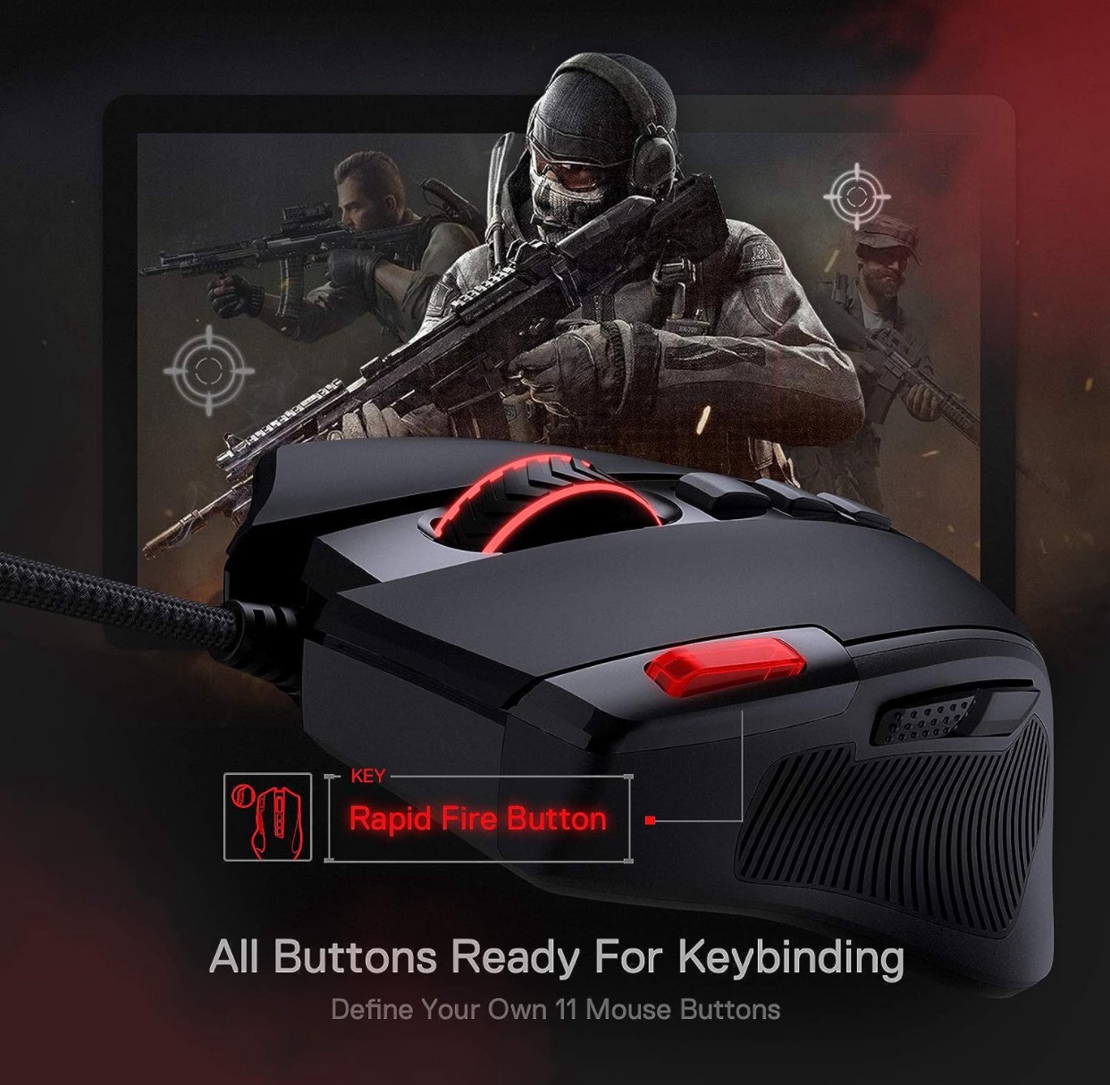 Mouse para juegos con cable de 8000 DPI con 11 botones programables y 5 modos retroiluminados, software compatible con teclas de bricolaje botón de disparo rápido